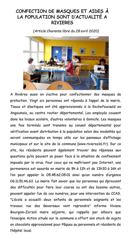 COVID 19 - Actualités sur le territoire de la CDC La Rochefoucauld Porte du Périgord en cliquant ici